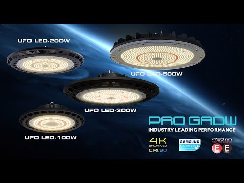 Pro Grow UFO LEDs are available in 100 W, 200 W, 300 W & 500 W configurations with outputs of PPF 210, 420, 620 & 1050 respectively.